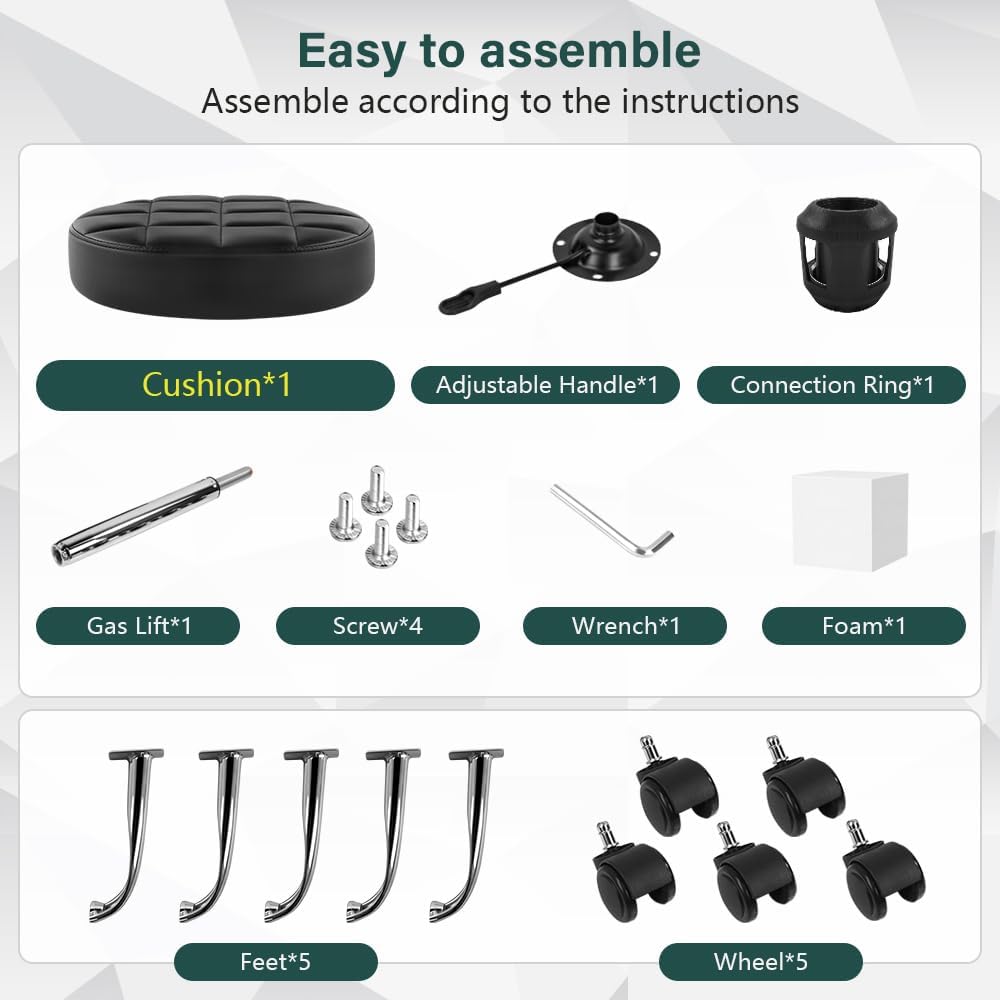 كرسي كلاسيكي: مصنوع من جلد البولي يوريثان الخيط بـ 9 شبكات، مقاوم للماء، سهل التنظيف، مناسب لأي مناسبة؛ارتفاع المقعد قابل للتعديل: يمكن تعديل المقاس الأكبر من 18.9 بوصة إلى 24.8 بوصة، وقطر الوسادة 12.6 بوصة، وسعة تحميل 250 رطلًا؛