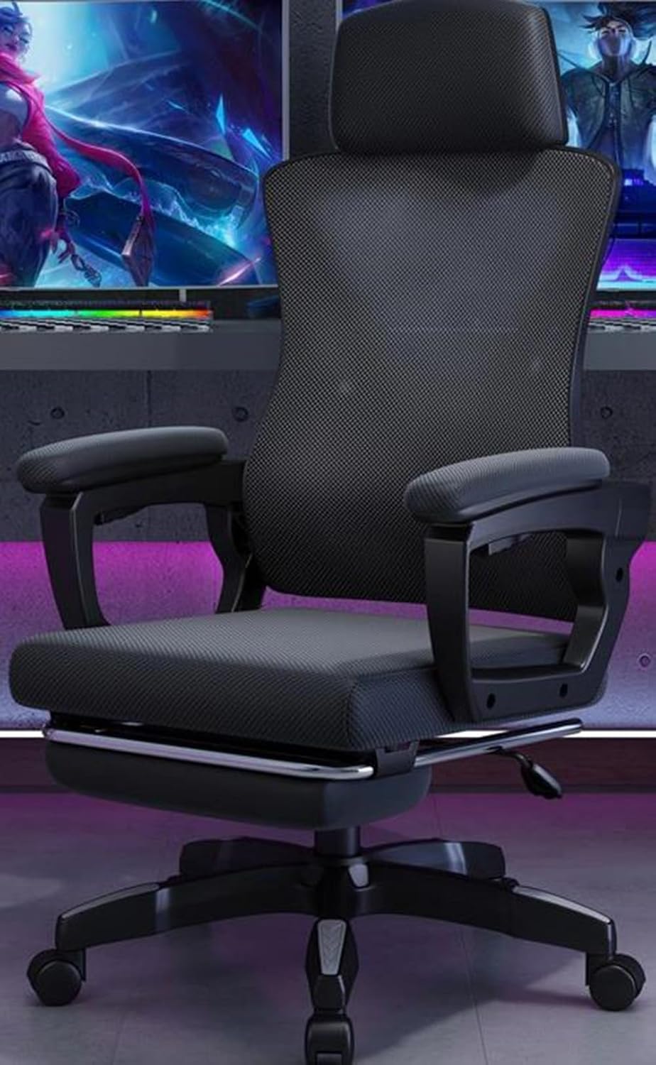 كرسي مكتب مريح من سيهو، كرسي كمبيوتر مع مساند راس قابلة للتعديل ومسند ظهر ومسند للذراع، كرسي شبكي (اسود)