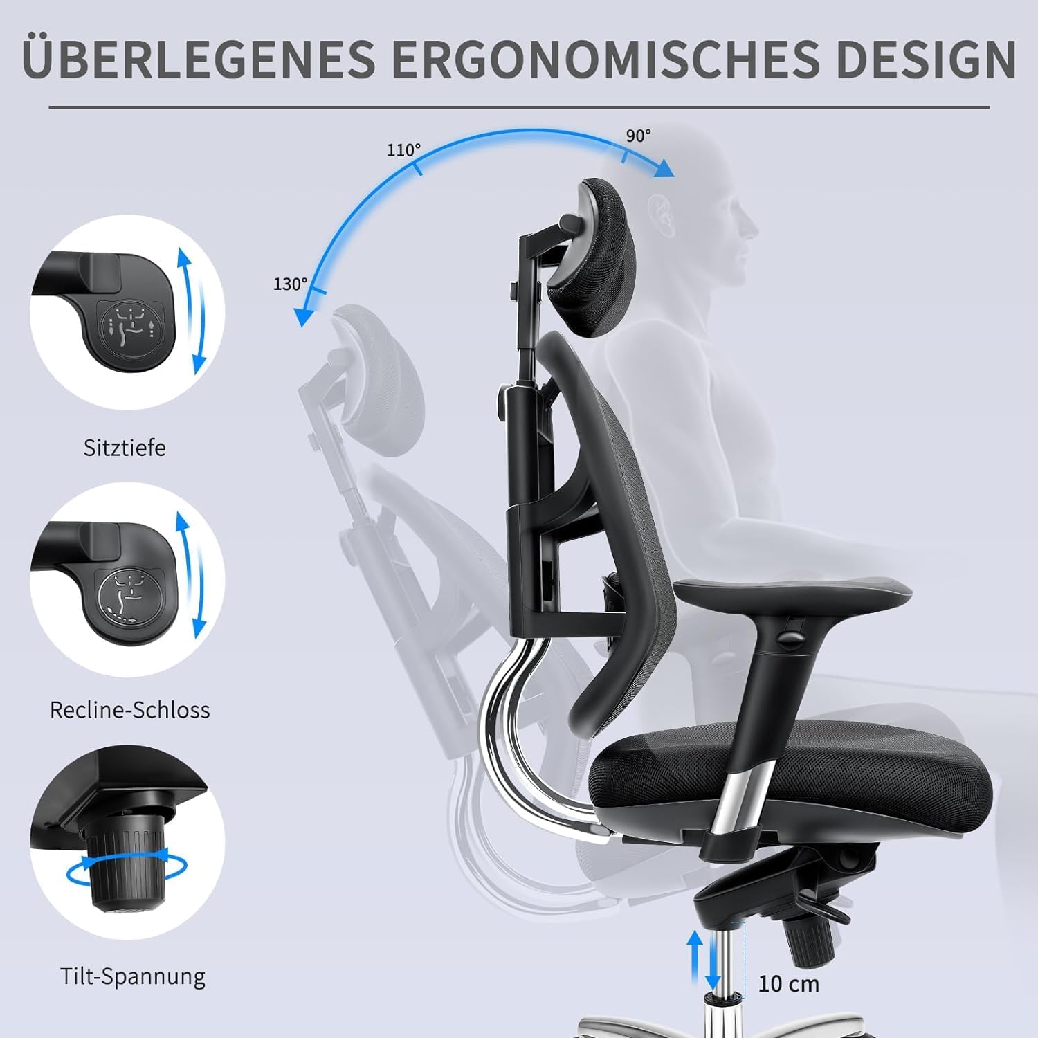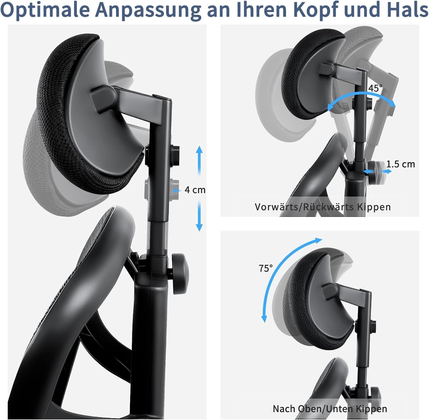2. مصمم لالراحة: يحتوي على دعم ظهري ووسادة رأسية.