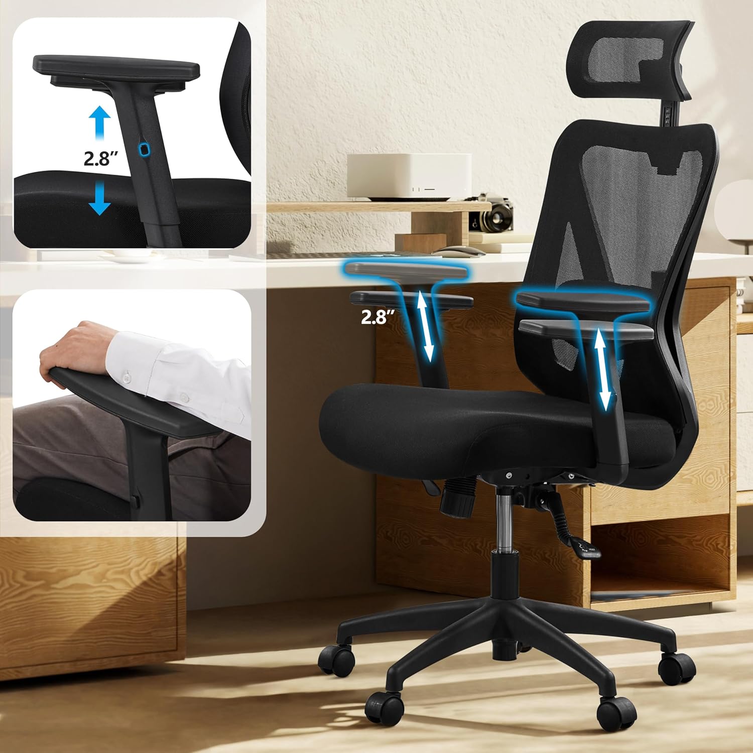 【مقعد مبطن كبير وظهر شبكي】بفضل مقعده الكبير 20.5 انش (عرض) × 21 انش (عمق) ووسادة إسفنجية عالية المرونة، يوفر كرسي مكتب الكمبيوتر هذا دعمًا مبطنًا كافيًا ويخفف من التعب بعد الجلوس الطويل. بالإضافة إلى ذلك، فإن الجزء الخلفي الشبكي جيد التهوية يسمح بمرور الهواء وحرارة الجسم والرطوبة بحرية، مما يحافظ على انتعاشك بشكل طبيعي.