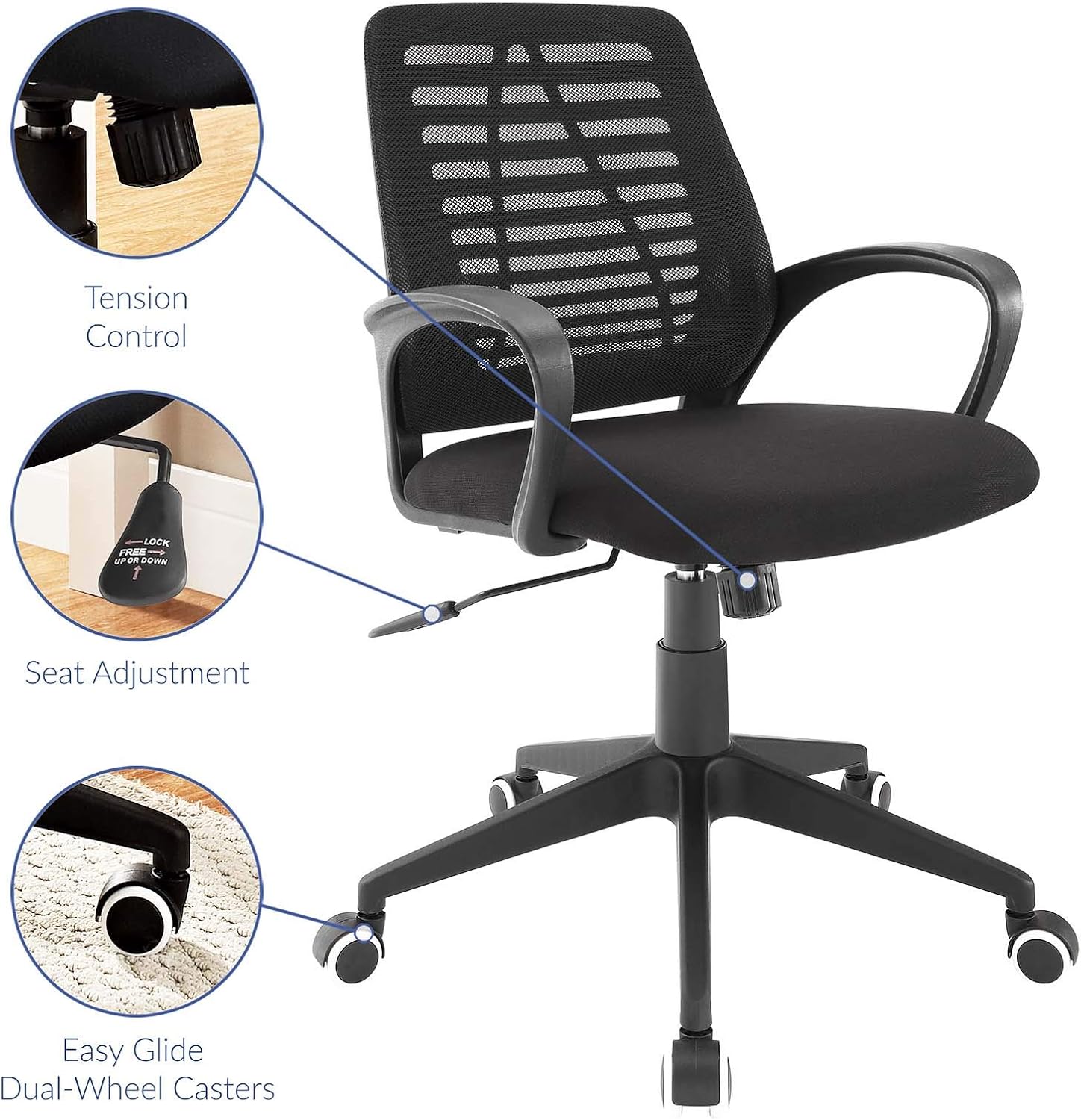 انحناء متزامن - قم بتخصيص المقعد وشد الزاوية الخلفية مع دوران المقبض. مثالي لمكتب الكمبيوتر المنزلي والمكتبي، يسمح كرسي المكتب الأسود المريح هذا بتخصيص ودعم