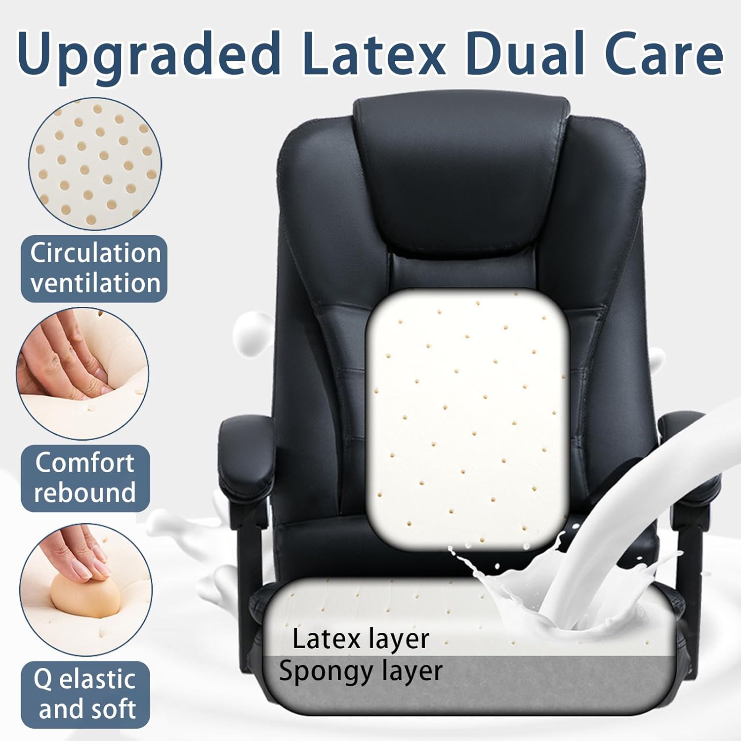 【مواد فاخرة】كراسي المكتب الخاصة بنا مصنوعة مع وضع الجودة في الاعتبار، الكراسي مصنوعة بمزيج من اللاتكس والإسفنج عالي الكثافة لضمان المتانة والراحة طويلة الأمد. إطار فولاذي قوي ومساند قدم مخفية قابلة للتعديل توفر ثباتًا ودعمًا إضافيين.